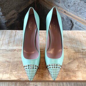 Gucci Seafoam Green Malaga Kid Studded Pumps