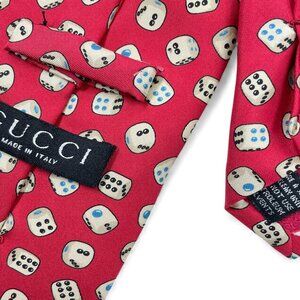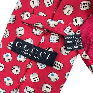 Gucci Silk Tie Italy Made Vintage Dice Gambler Print Red White