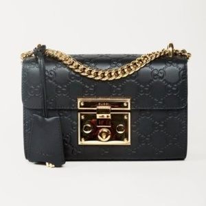 Gucci Small Black Leather Guccissima GG Padlock Bag