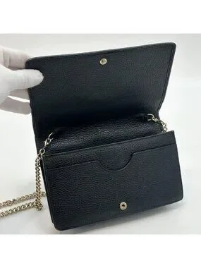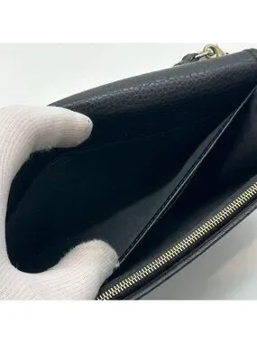 This is an authentic Gucci Soho Chain Wallet Interlocking in black. The wallet features the iconic Gucci interlocking logo embossed on the front and a chain strap for versatile wear as a crossbody or clutch.