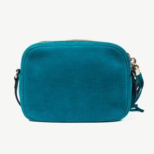 Made in Italy, this Soho Disco crossbody from Gucci is crafted with the designer's Vitello Range nubuck leather in a Cobalt Blue, and features silver-tone hardware, an adjustable shoulder strap, and an embossed interlocking GG logo on the front. Secured with a fringe tassel pull, the top zip closure opens to a beige canvas-lined interior containing a gusseted pocket, and a flat pocket.