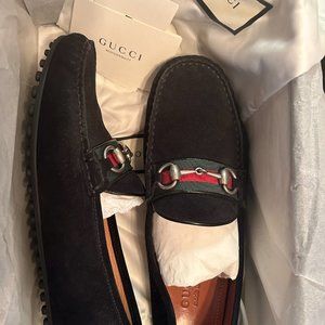 Gucci black suede loafers "Horse bit" style. Men's size 10.