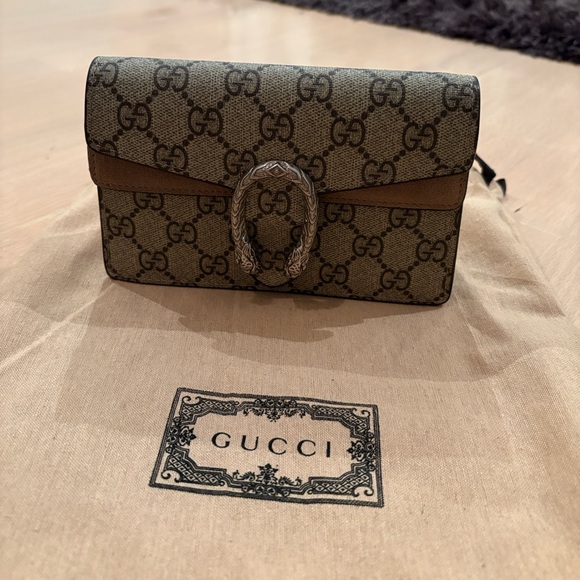 This is the SUPER MINI Gucci Dionysus bag that I bought consignment in 2024. It is in good condition, with a little discolouration on the suede part of the flap (inside) where the button rests. As seen in pics. Comes with the dust bag, no box. Price is somewhat negotiable.