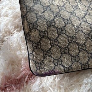 Very rare and iconic bag. Collectors piece as it is Gucci and supreme collab in extremely rare navy blue colour. There is an Ink stain pictured in bottom corner. Can be removed with proper cleaning. I would if I was planning on keeping it but I don’t have the time so price reflects the cost of dry cleaning.