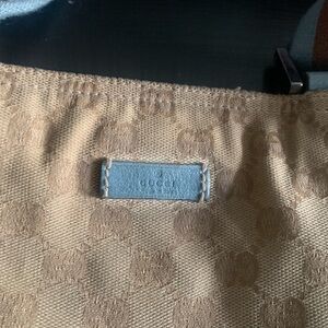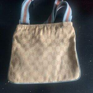 Gucci Cossbody shoulder bag in a stylish tan color with blue Perfect for any occasion. Authentic Gucci purse