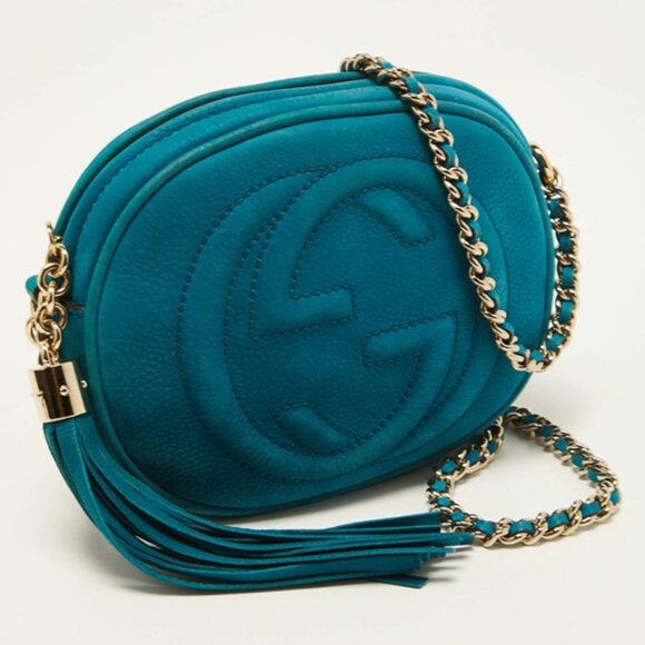 Gucci Turquoise Cuir Mini Soho Disco Chain Crossbody Bag