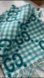 Elegant Gucci scarf with turquoise and white design. Features intricate fringe.