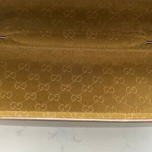 Gucci Authentic Vintage Hard Sided Eye Glass Case in Dark Bronze Gold Logo w Velveteen Interior