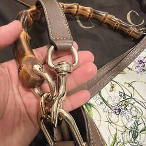Great condition. No rubs at all for this White Gucci Canvas Bamboo Flora Diana Satchel