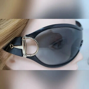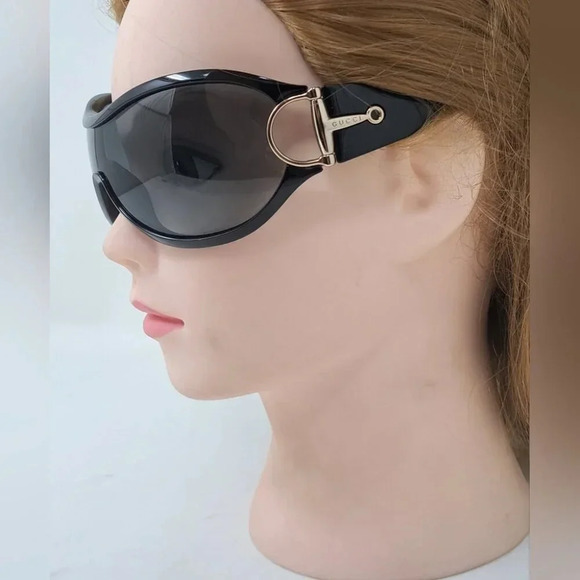 Gucci Women's Sunglasses Vintage Y2K Wrap Black Gray Gold Horsebit GG2561/S