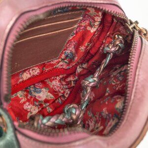 Made in Italy, this mini bag from Gucci's Zumi collection for the 2018 Fall and Winter collection is crafted with matelasse laminated leather in hues of pink and blue, and features gold- and silver-tone hardware, a braided adjustable shoulder strap; a hybrid logo that merges two of the House's most distinctive codes, the Horsebit and the Interlocking G; and a front slip pocket. The top zip closure opens to a red floral print-lined interior, and contains two internal card slots, and a keyring.