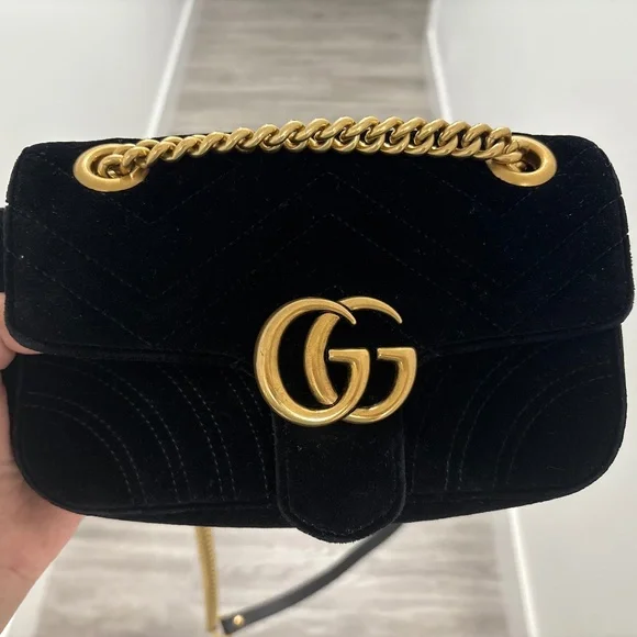 In really good condition. Authentic Gucci velvet bag