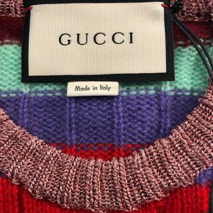 Made of cashmere this sweater from Gucci is a winter wardrobe must-have. With vivacious colours in horizontal stripes, this sweater comes with a crew neck and full sleeves. The sweater has rib knit styling at the cuffs, hem and the neckline ensuring a close fit.