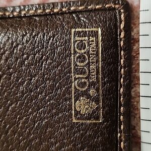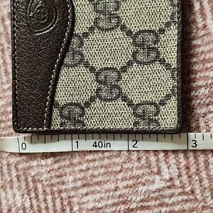 Sleek black leather card holder. Features Gucci logo in gold. Compact and stylish design.