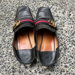 Gucci mid heel leather loafer with pearl backing