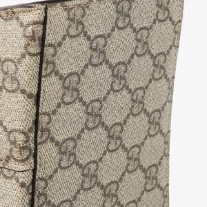 This absolutely one of a kind bag spawned from a collaboration between Gucci and Balenciaga is a necessity for any collectors or fashion forward individuals. The bag features a leather canvas with Gucci's "GG" monogram pattern, Balenciaga "B" logo charm on the front flap, shoulder strap, top handle, and one exterior pocket. Lifting the magnetic closure flap reveals a canvas lined interior with "Balenciaga" printed throughout, two slip pockets, and one zipper closure pocket.