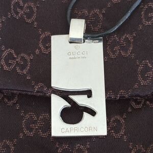 Authentic Gucci Capricorn pendant necklace made of 925 silver, comes with its leather cord & sterling silver closure. In excellent preowned condition, this gorgeous unisex necklace is a vintage item from the 1990s.