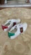 White leather with red leather detail on the heel of one shoe and green on the other