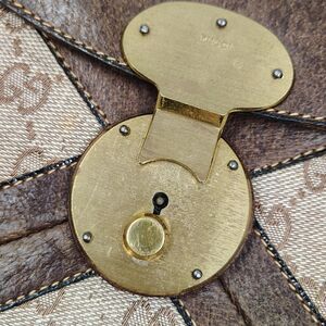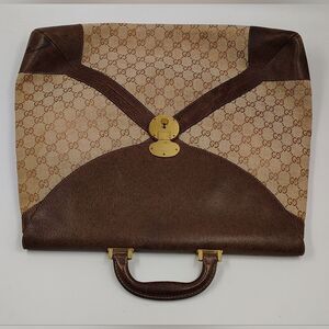 Gucci Brown Leather & Cream Logo Monogram Satchel Bag Vintage