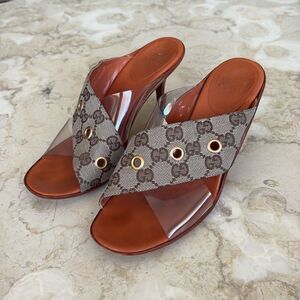 Gucci Vintage Beige/Brown GG Canvas, Leather & PVC Criss Cross Heeled Sandals