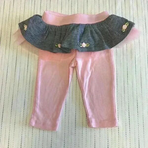 Pink leggings with tile skirt embroidered with roses