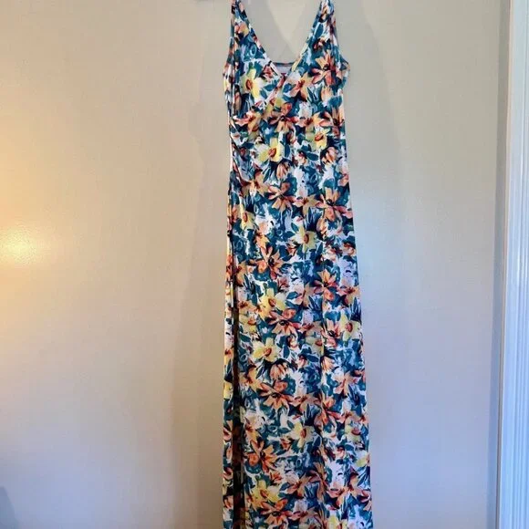 Guess: floral multicolour stretch maxi with spaghetti sleaves – Small