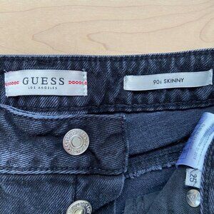 Item keywords: Guess jeans, 90s skinny, high-rise jeans, women's denim, black jeans, button fly, size 25, casual wear, vintage style, classic fit, Guess Los Angeles, everyday fashion, cotton jeans, Sexy flattering jeans, High waisted