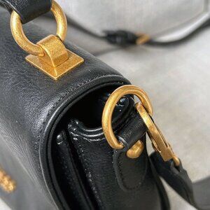 Crafted with gold tone hardware and Guess branding, 3 compartments, crossbody strap and top handle. Excellent clean condition. Vegan leather