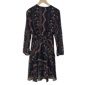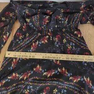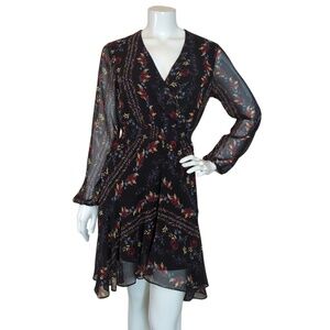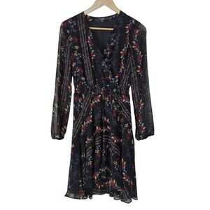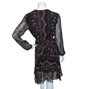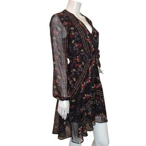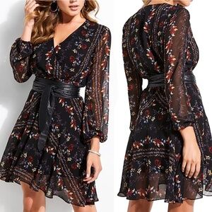 Guess Black Floral Faux Wrap Long Sleeve Mini Dress (no belt)
