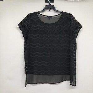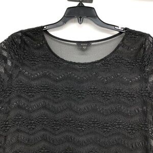 Guess Black Lace Chevron Sheer Short Sleeve Top size S