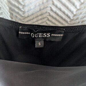 Guess, Midi Dress, Slinky, Ruched, Black, Bodycon, Cocktail, Party Dress, Date Night, Stretchy, Adjustable Straps, Size Small, Wedding Guest Dress, LBD, Little Black Dress
