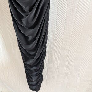 Guess Black Ruched Midi Dress Slinky, Adjustable Straps Size Small Cocktail