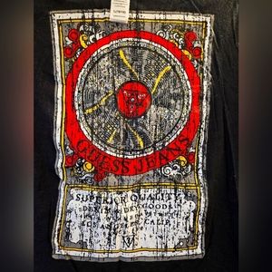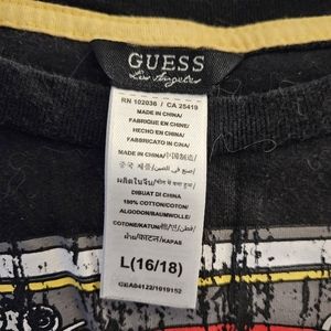 Guess Black T-Shirt Size Large Red White Logo Circle Script Triangle God Write.