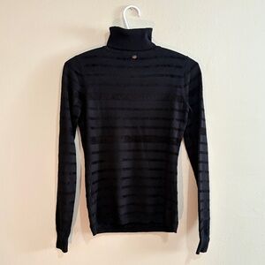 Guess Black Turtleneck Sweater with Velvet Textured Stripes