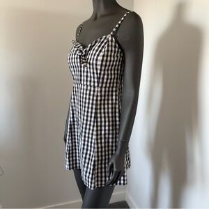 ⚪️ Guess Black & White Gingham Tie Front Mini Dress – Adjustable Straps