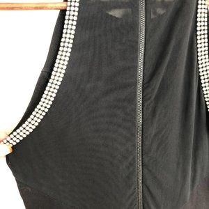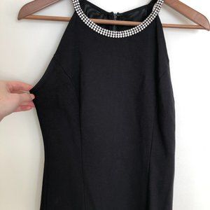 Cute crystal necklace detail little black bodycon dress. + sheer upper back detail.