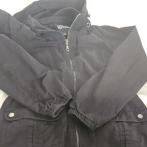 Guess Black Utility Jacket with Collared Neckline & Hoodie