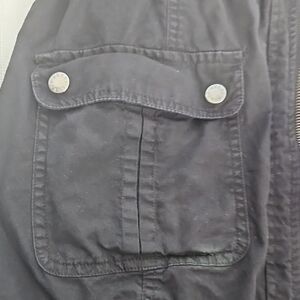 This Guess utility jacket in black offers a classic and versatile style, featuring a collared neckline and a relaxed fit. Made from a cotton-blend fabric, it provides a comfortable and lightweight option for everyday wear.
