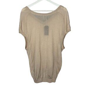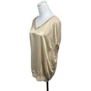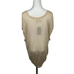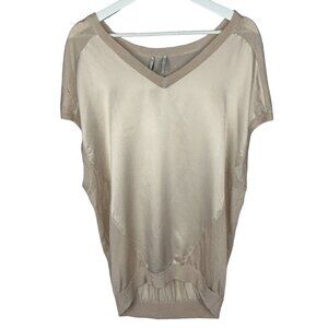 Guess Blouse Large Satin Mesh Sleeveless Pullover Top Gold Beige Sheer Stretch