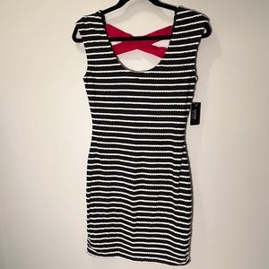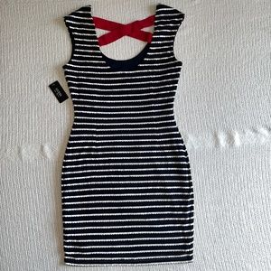Guess Bodycon Navy Blue and White Striped Dress
