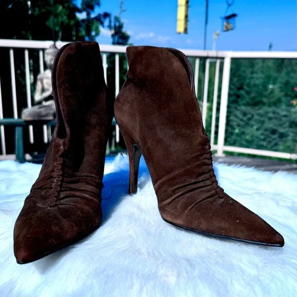 Guess heeled ankle boot Size 8.5 Brown velour upper, with rouching on front Like new