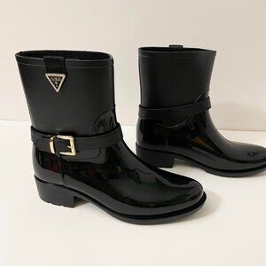 Guess Boots Womens Size 8 Black Booties Slip On Rubber Rain Boot GF Kirklin