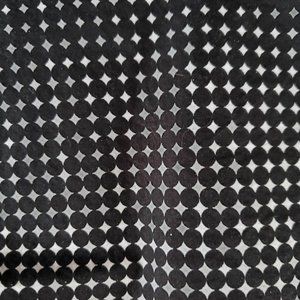 I loved this shirt on him but sadly he outgrew it in the chest and shoulders compliments of the pull-up bar and weights. Beautiful gradient pattern from black polka dots fading into white diamonds, this shirt is a stunner.