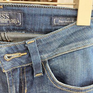Guess Brittney Skinny Blue Dark Wash Jeans Size 25Flat-lay Measurements:Waist: 13.5'' Inseam: 32'' Rise: 18.5'' Length: 40'' Leg Opening: 5'' Condition: Pre-Owned Like New Experience comfort and style like never before with the Guess Brittney Skinny Blue Dark Wash Jeans. Boasting a sleek, slimming fit, these jeans are designed to flatter your figure and make you feel confident and unstoppable. Measuring a perfect 13.5'' waist and featuring a comfortable 32'' inseam, these jeans are sure to fit you like a glove. Plus, with a rise of 18.5'' and a length of 40'', these jeans are perfect for any occasion. And with a snug 5'' leg opening, you'll be turning heads everywhere you go. Don't settle for ordinary denim, elevate your wardrobe with these pre-owned, like new Guess Brittney Jeans.