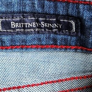 Guess, Brittney-Skinny, low-rise, skinny, blue denim Jean pants. Zip-up fly with button closure, two front pockets with a watch pocket, two back pockets and belt loops. Super soft,comfortable,stretchy lightweight jeans in great condition