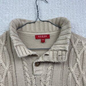 Guess Cable Knit Fisherman Sweater Mens Sz L Off-White Beige Heavyweight Grunge
