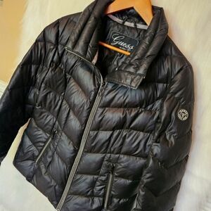 Stay warm and stylish with this iconic Guess Classic Down Filled Insulated Puffer Jacket! Filled with luxurious down for ultimate warmth, this sleek and durable design features a water-resistant exterior and cozy insulation. Perfect for braving the elements in style, this timeless puffer jacket boasts a classic Guess aesthetic, ensuring you'll look and feel great all season long at a fraction of the price.