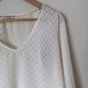 Guess cream chiffon pullover blouse. Long sleeves. See thru. V-neck. Good condition 10/10. Measurements in photos.