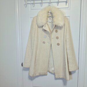 Guess Cream converitble Wool blend Jacket with detachable faux fur collar