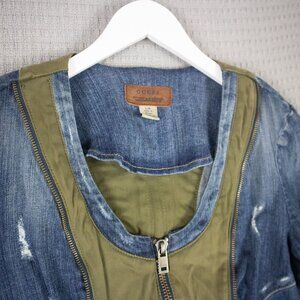 Guess Cropped Distressed Denim combo Zipper Jacket Y2K 2000s